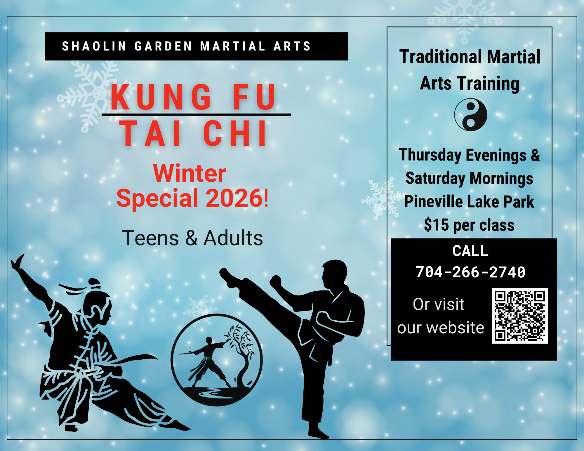 Look for our Facebook page for our most up to date information. Shaolin Garden Martial Arts